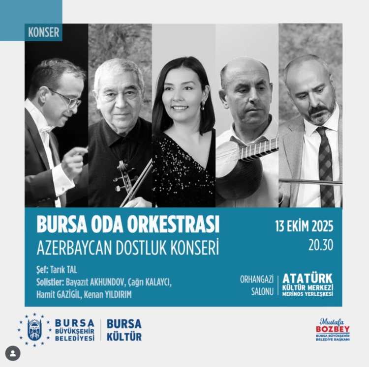 İki ülke arasındaki sarsılmaz dostluğun benzersiz ezgilerle kutlanacağı “Azerbaycan Dostluk Konseri”, 13 Ekim 2025 Pazartesi günü saat 20.30’da Merinos Atatürk Kültür Merkezi Orhangazi Salonu’nda gerçekleştirilecek.