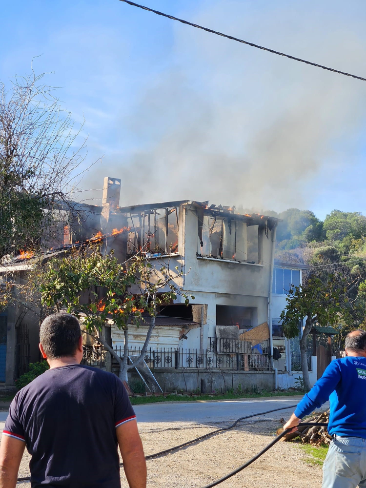 Bursa'nın Mudanya ilçesinde çıkan yangında bir ev küle dönerken, yanındaki bina da alevler ve söndürme esnasındaki su nedeniyle hasar gördü.