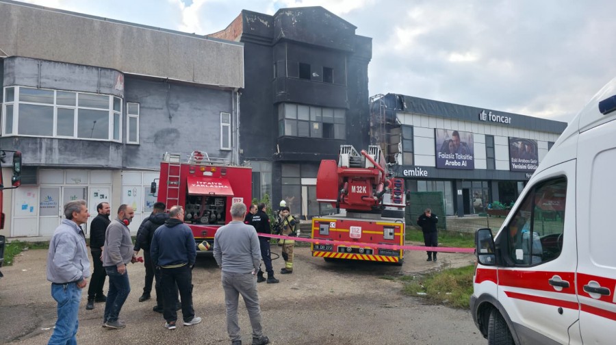 Ekiplerin müdahalesiyle söndürülen yangında, bir minibüs, iş yerinin reklam tabelası ve bina giriş kapısı zarar gördü.