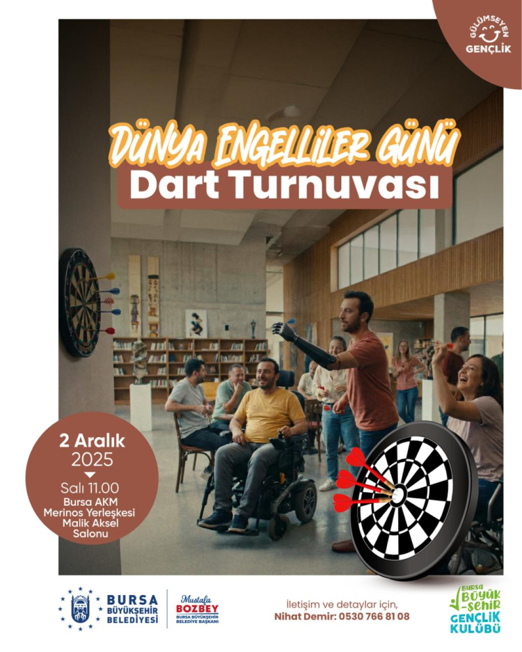3 Aralık Dünya Engelliler Günü kapsamında, engelli bireylerin sosyal yaşama katılımını artırmak amacıyla özel bir dart turnuvası düzenlenecek.