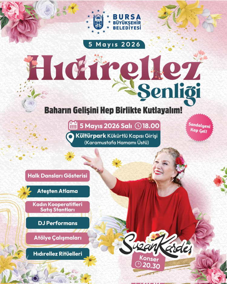 Bursa Büyükşehir Belediyesi, baharın gelişini simgeleyen Hıdırellez’i düzenleyeceği şenlikle kutlamaya hazırlanıyor. Renkli etkinliklere sahne olacak programda, vatandaşlar geleneksel ritüeller ve konserlerle bir araya gelecek.