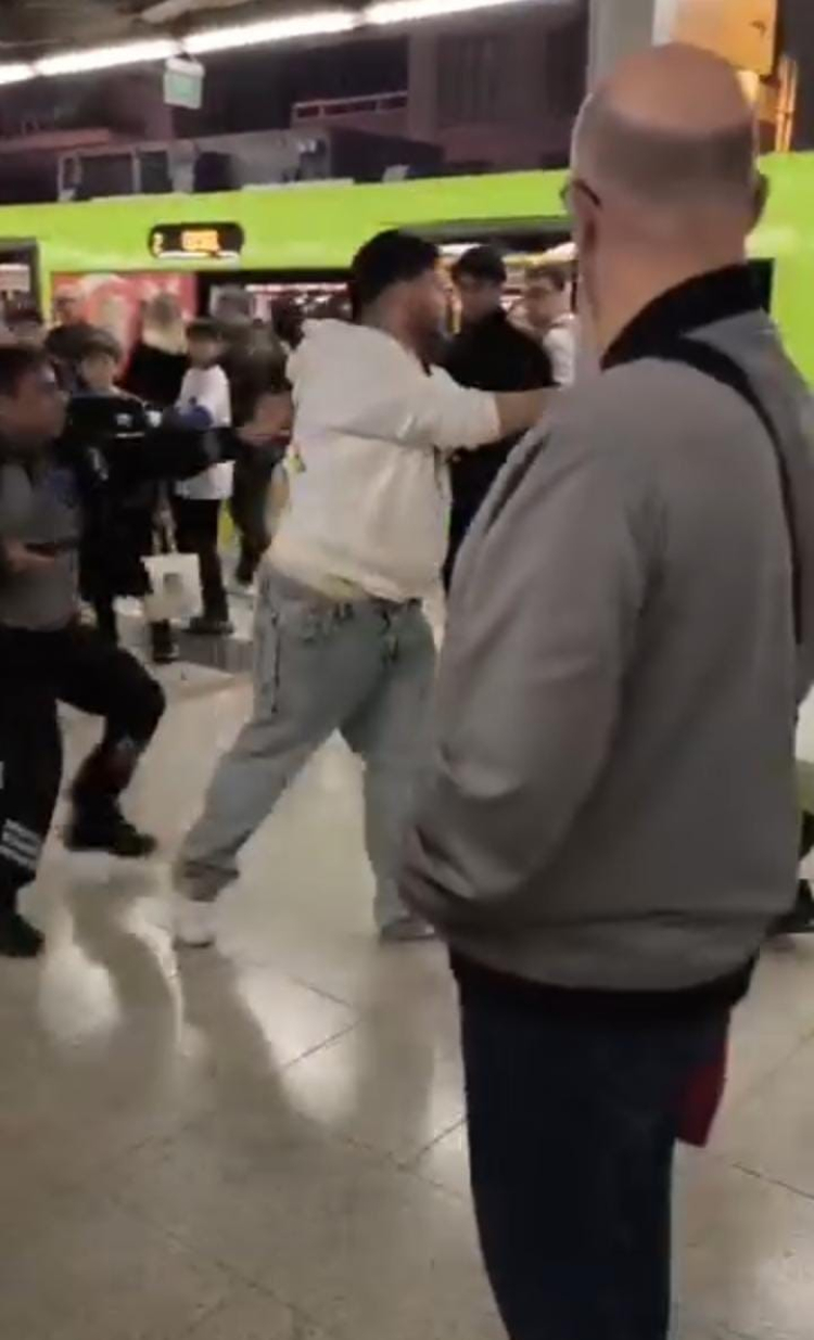 Bursa'da metro istasyonunda güvenlik görevlisi ile bir şüpheli arasında çıkan kavgada dubalar, yumruklar havada uçuştu.