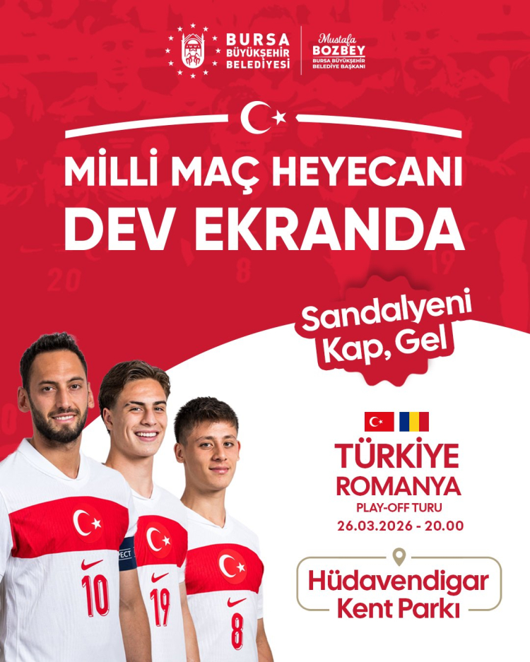 Karşılaşma 26 Mart 2026 Perşembe günü saat 20.00’de başlayacak. Bursa Büyükşehir Belediyesi, tüm vatandaşları milli heyecana ortak olmaya davet etti.