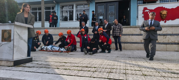 Afet Farkındalık Günü etkinlikleri kapsamında, 18 Kasım tarihinde geniş katılımlı deprem tatbikatı gerçekleştirildi. Tatbikata Bursa İl Millî Eğitim Müdür Yardımcısı Yunus Bulut ve Bursa İl Millî Eğitim Şube Müdürü Cevdet Ataoğlu da katıldı. Tatbikat öncesinde konuşma yapan İl Millî Eğitim Müdür Yardımcısı Yunus Bulut, Türkiye’de yaşanan büyük deprem felaketlerine dikkat çekerek afetlere karşı hazırlıklı olmanın hayati önemine vurgu yaptı. Eğitim camiasının afet bilinciyle hareket etmesi gerektiğini belirtti. Etkinliğe, İşyeri Sağlık ve Güvenlik Birimi Koordinatörü ile birim temsilcileri de iştirak etti. Tatbikat kapsamında öğrencilere deprem anında hayat üçgeni oluşturma, doğru tahliye yöntemleri ve ilk yardım prosedürleri gibi konularda teorik ve uygulamalı Deprem Hazırlık Eğitimi verildi.
