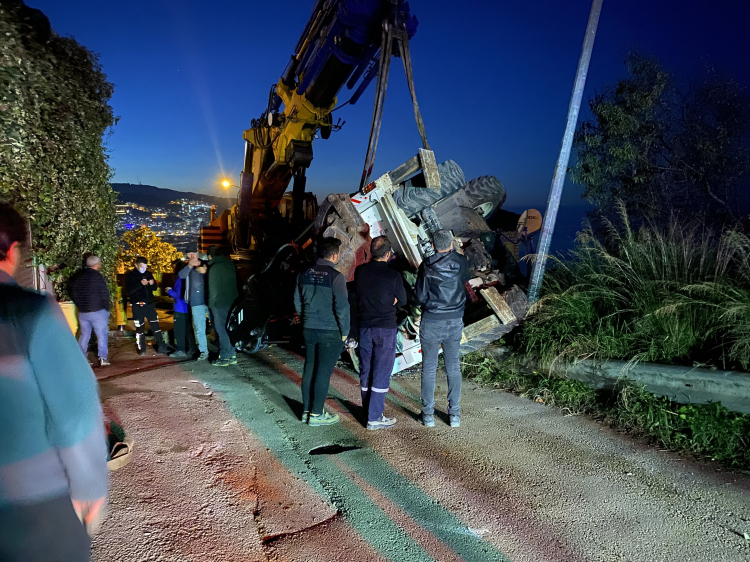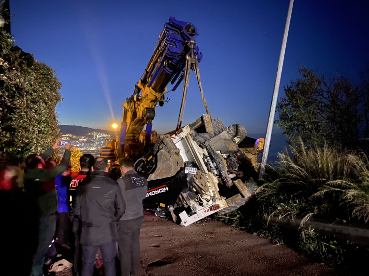Güzelyalı Burgaz Mahallesi Ferah Sokak üzerinde meydana gelen olayda, bir evde yürütülen çalışmalar sırasında vinçteki kepçe devrildi.