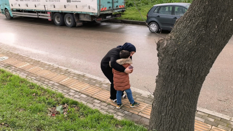 Bursa'nın İnegöl ilçesinde meydana gelen kazada devrilen triportörde annesi yaralanan çocuk, gözyaşlarını tutumadı.
