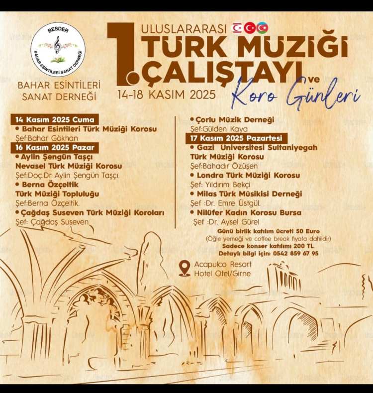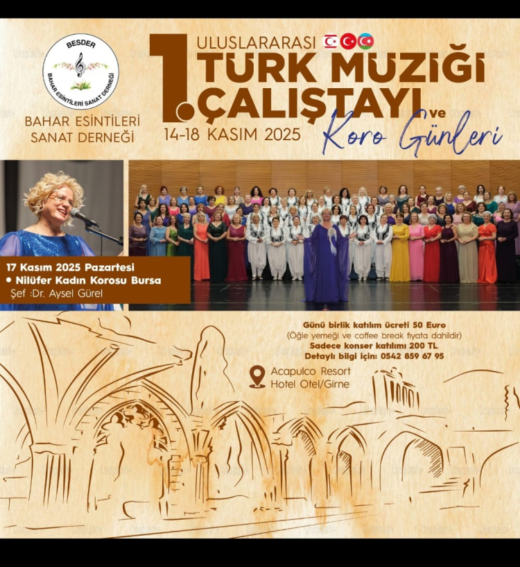 “KKTC’de müstesna bir dernek olan ‘Bahar Esintileri Sanat Derneği’nin 14-18 Kasım 2025 tarihleri arasında düzenlediği 1. Uluslararası Türk Müziği Çalıştayı ve Koro Günleri’ne Bursa’yı temsilen katılacak olmaktan onur duyuyoruz. Yurtiçi ve yurtdışından farklı koro ve sanatçıların yer aldığı bu organizasyonda bulunmaktan mutluyuz.”