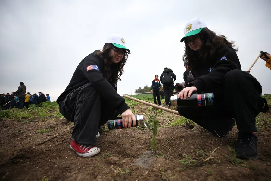Seyahat süreleri boyunca kişi başı 520 kilogram karbon salınımına neden olduğunu hesaplayan 45 öğrenci, 2024 yılında Bursa Uludağ Üniversitesi Yerleşkesi'nde yanan orman arazisine toplam 135 fidan dikti.