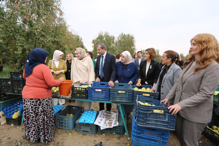 Topuklu ayakkabılı iş kadınlarıyla şalvarlı köylü kadınları aynı tarlada aynı hedef için buluştu. Ağırlığı bir kilogramı bulan Türkiye’nin en büyük deveci armudu üreticisi olan Bursa’nın Gürsu ilçesinde bu yılki hasat anlamlı bir mesajla sonlandı.