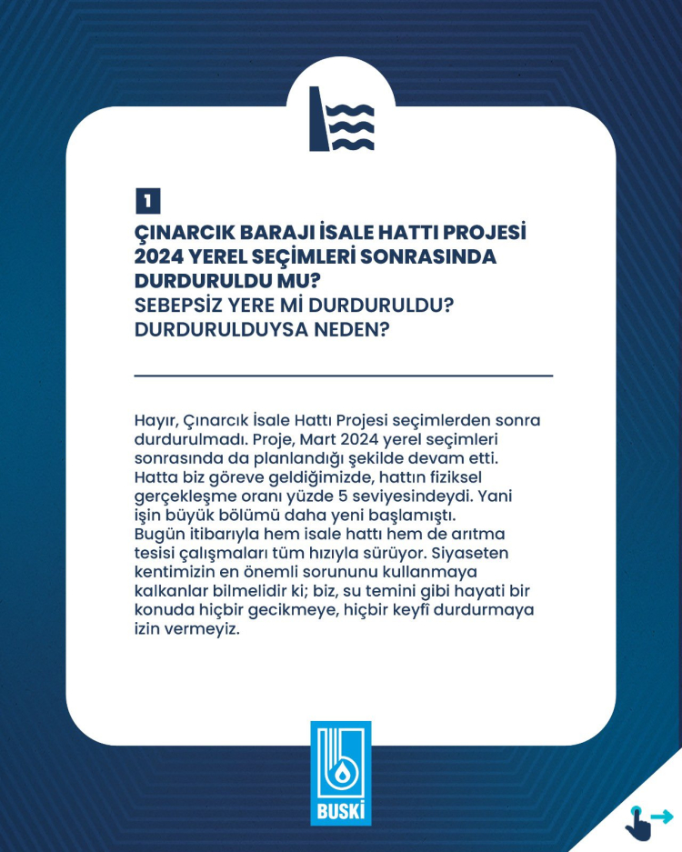 BUSKİ, 2024 yerel seçimleri sonrası projenin durdurulduğu yönündeki iddiaları reddetti.