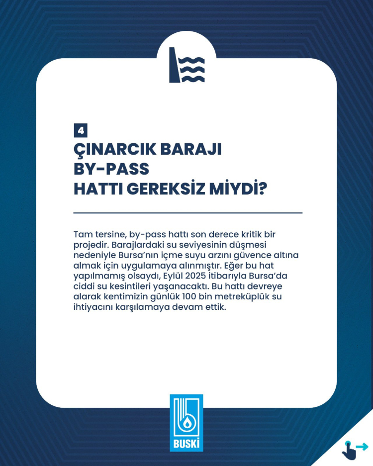 Kurum, by-pass hattının gereksiz olduğu yönündeki iddialara karşı, bu hattın Bursa’nın içme suyu arzını güvence altına almak için zorunlu olduğunu belirtti: