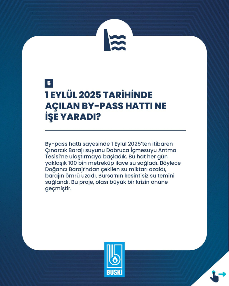 “Eğer bu hat yapılmamış olsaydı, Eylül 2025 itibarıyla Bursa’da ciddi su kesintileri yaşanacaktı. Bu sayede günlük 100 bin metreküplük su ihtiyacı karşılanmaya devam edildi.”