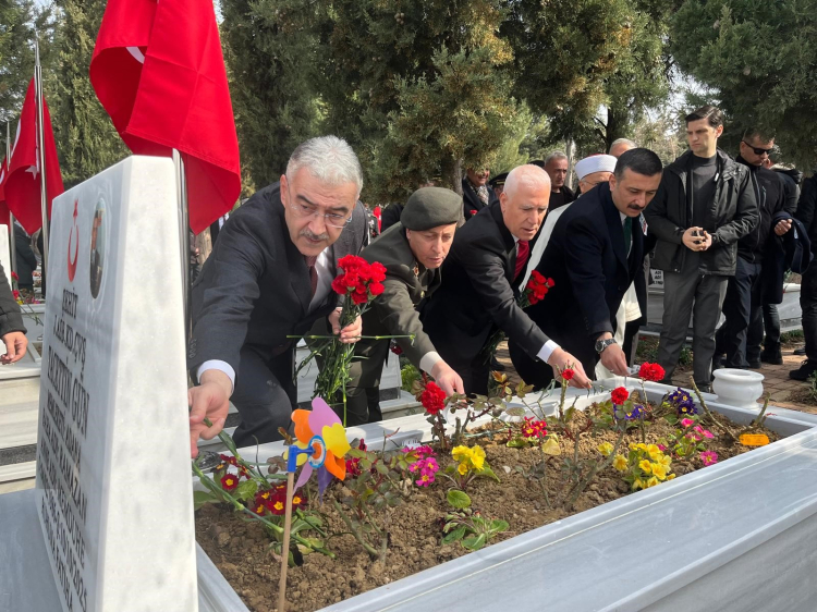 Şehitlik anıtına çelenk koyma ile başlayan törenler İstiklal Marşı, saygı duruşu ve saygı atışının ardından şehit kabirlerinin ziyaret edilmesiyle devam etti.