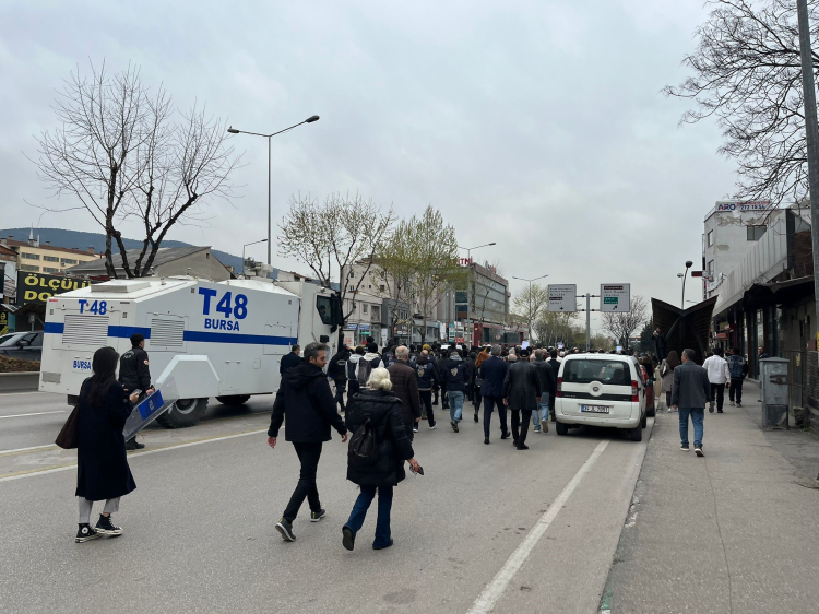Eylem sırasında toplanan grup sık sık "Bursa'nın başkanı Mustafa Bozbey" sloganları atarak destek gösterisinde bulundu.