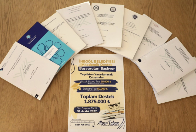 "Programdan faydalanmak isteyen adaylar, başvuru belgelerini akademikdestek@inegol.bel.tr adresine WIP dosyası formatında iletecek. Başvurular İnegöl Belediyesi bünyesinde oluşturulan Bilimsel Çalışmalar Destek Kurulu tarafından değerlendirilecek. Sonuçlar 15 gün içerisinde adaylara mail ve telefon yoluyla bildirilecektir. Detaylı bilgi almak isteyen adaylar, İnegöl Belediyesi Şehir Araştırmaları Merkezi’ne 0224 715 10 10 numarası üzerinden; 1571-1572-1573 dahililerinden ulaşabilirler." İNEGÖL’E TANIMLI 155 YÜKSEK LİSANS VE DOKTORA TEZİ BULUNUYOR