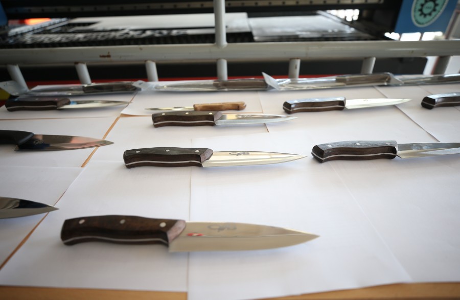 Öğrenciler, 3 boyutlu olarak 8 farklı türde tasarlanan Bursa bıçağını rehber öğretmenin onayının ardından lazerle kesiyor. İş güvenliği gereği bileme işçiliği okul dışında yapılan bıçaklar, son kontrollerin ardından kullanıma hazır hale geliyor.