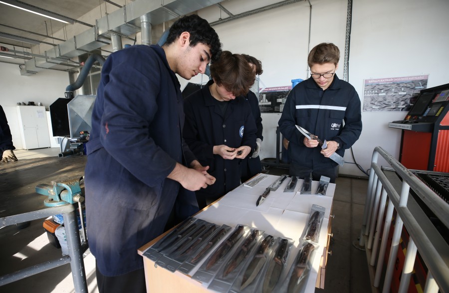 Bursa'daki Otomotiv Endüstrisi İhracatçıları Birliği (OİB) Mesleki ve Teknik Anadolu Lisesinin öğrencileri, modern yöntemlerle coğrafi işaret tescilli Bursa bıçağı üretiyor.