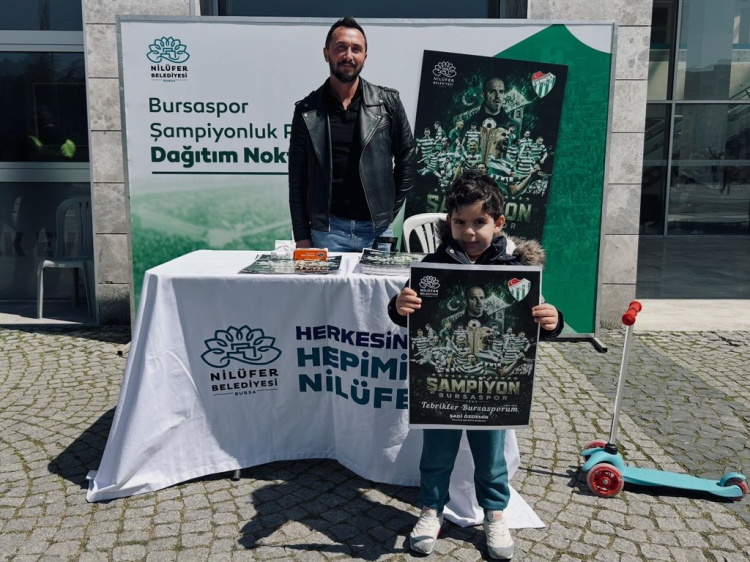 Bursa’da şampiyonluk coşkusu sürerken, Nilüfer Belediyesi anlamlı bir kampanyaya imza attı. Belediyeden yapılan açıklamada, Bursaspor’un şampiyonluğunu simgeleyen özel posterlerin Nilüfer Belediyesi Halk Evi’nden temin edilebileceği duyuruldu.