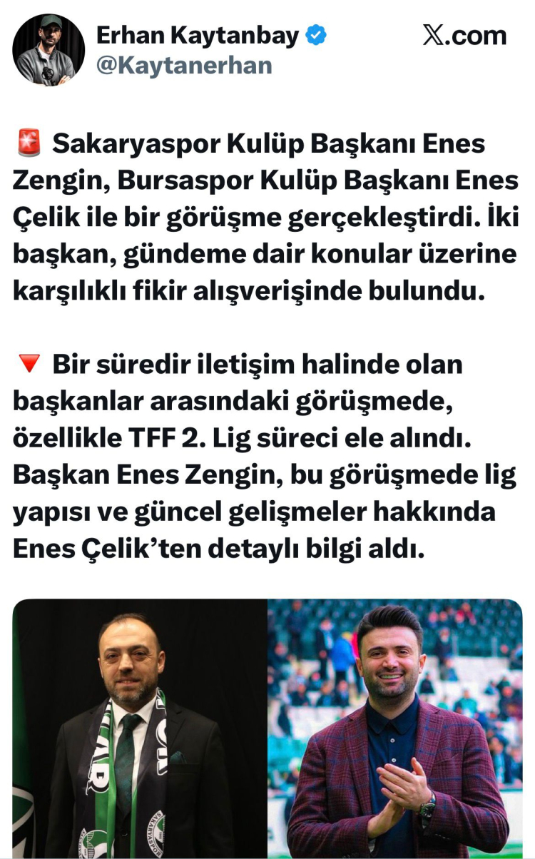 Edinilen bilgilere göre iki başkanın bir süredir temas halinde olduğu öğrenilirken, görüşmede Türk futbolunun alt liglerindeki güncel yapı, kulüplerin karşılaştığı sorunlar ve yeni sezon planlamaları ele alındı. Özellikle TFF 2. Lig’in dinamikleri üzerine detaylı değerlendirmeler yapıldığı belirtildi.