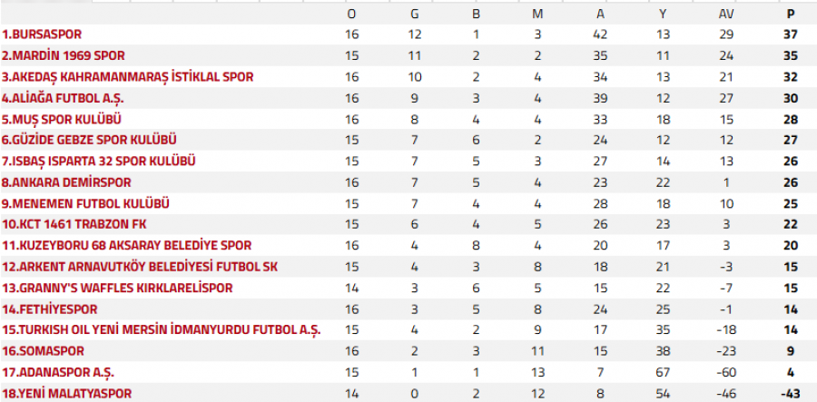 Bursaspor’un liderliğini koruyup koruyamayacağı gözler Mardin 1969 Spor - Gebzespor karşılaşmasındaydı. Mardin ekibi 2-0 öne geçtiği maçı koruyamadı ve son dakikalarda yediği penaltı golüyle mücadele 2-2 sona erdi.
