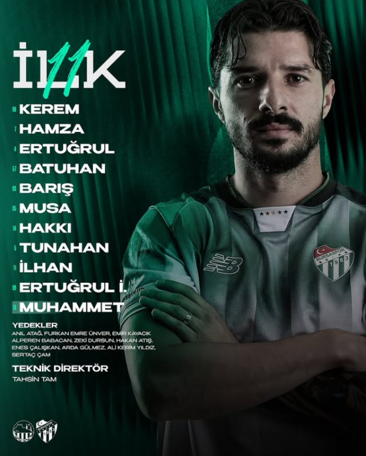 Bursaspor’un Mardin 1969 Spor karşısında maça çıkacak ilk 11'i açıklandı.