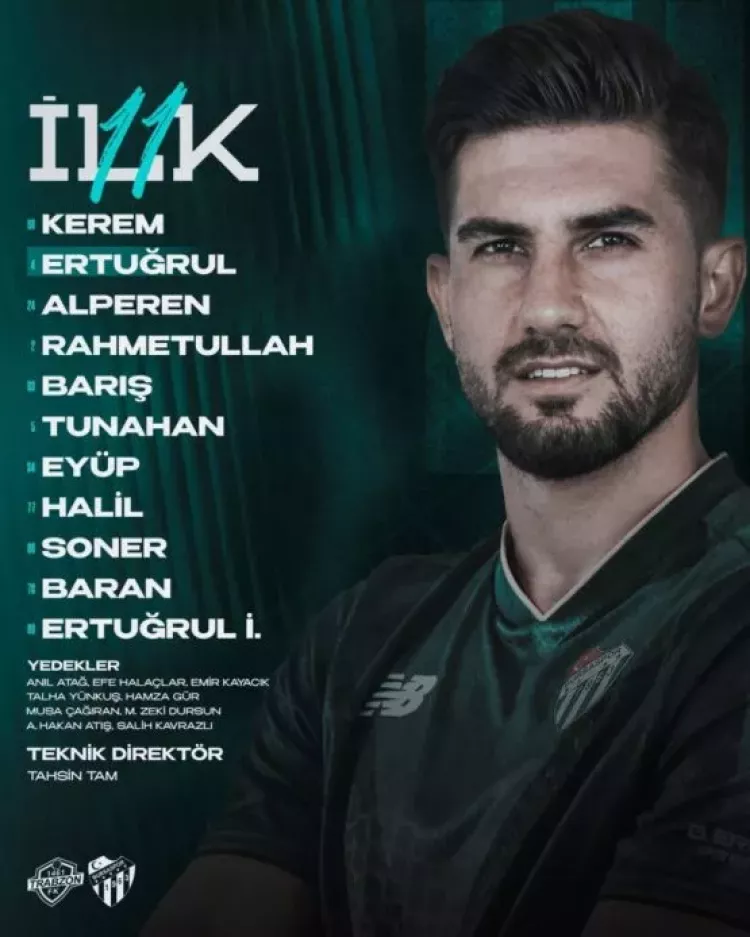 Bursaspor'un deplasmanda oynayacağı 141 Trabzon FK maçı ilk 11'i açıklandı.