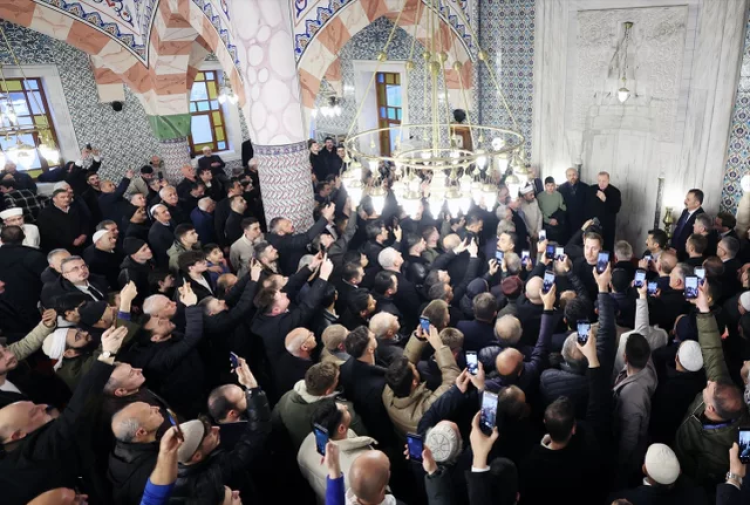 Cami çıkışında vatandaşlarla bayramlaşan Erdoğan, gazetecilere simit ikramında bulundu. Bayramın birlik ve beraberliğe vesile olmasını dileyen Erdoğan, "Rabb'im yar ve yardımcımız olsun. Ramazan Bayramı'nı ülkemiz ve milletimiz için hayırlara vesile kılsın" diye konuştu.