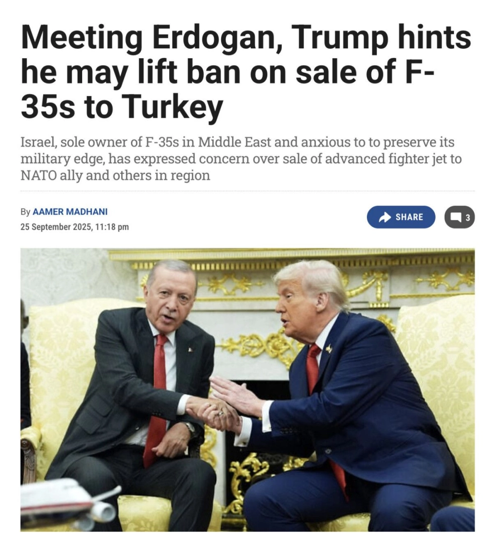 Haberin detaylarında; "Erdoğan'ın ziyareti öncesinde Trump, Erdoğan ile F-16'lar için önemli bir sözleşme ve F-35 programıyla ilgili görüşmeler de dahil olmak üzere çok sayıda ticari ve askeri anlaşmanın yakın olduğunu söylemişti" ifadeleri kullanıldı.