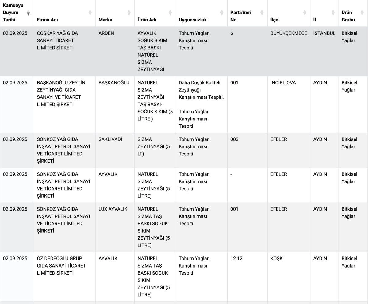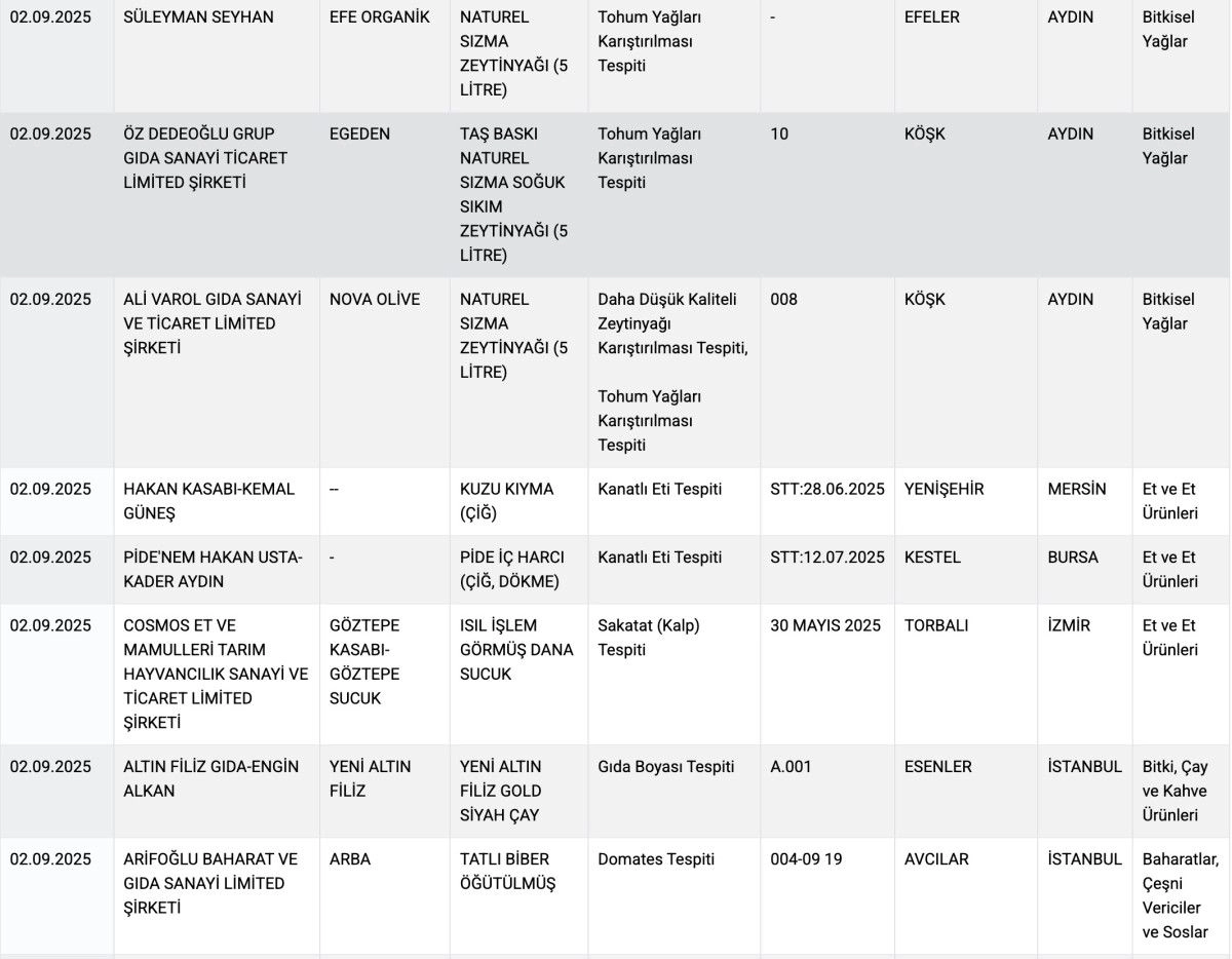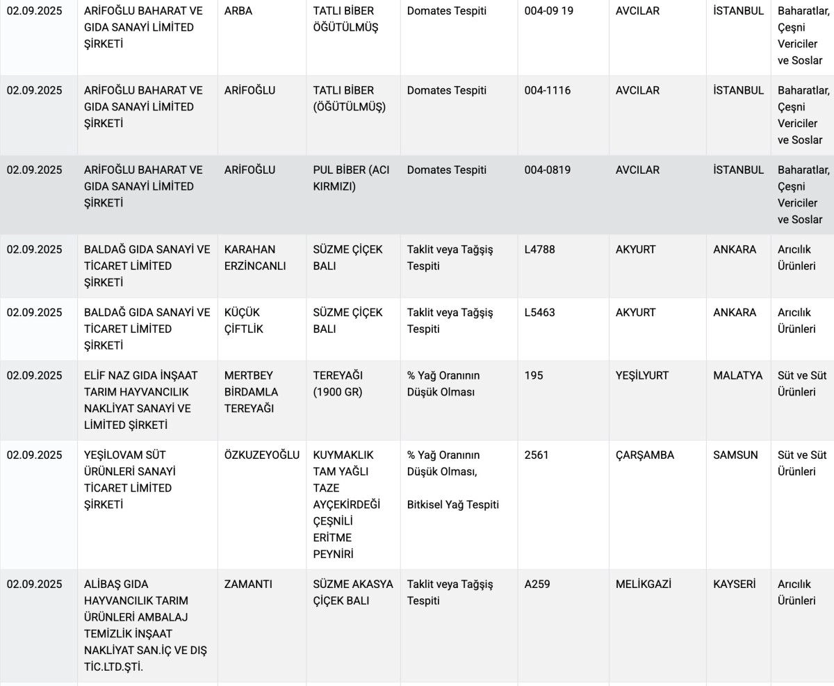 Tarım ve Orman Bakanlığı, Türkiye genelinde yaptığı denetimler sonucunda tespit ettiği uygunsuzlukları yayımlamayı sürdürüyor.