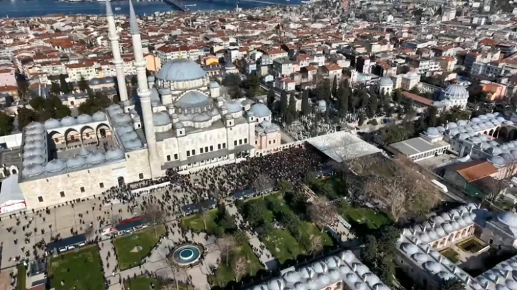 Fatih Camii ve çevresi havadan görüntülenirken, cenaze töreni nedeniyle bazı yollar trafiğe kapatıldı. Saat 09.00'dan program bitimine kadar İtfaiye Caddesi, Büyük Karaman Caddesi, Mıhçılar Caddesi, Aslanhane Sokak, Manisalı Fırın Sokak, Taylasan Sokak, Hulusi Noyan Sokak, Nalbant Demir Sokak, Hattat Nazif Sokak ve Fatih Türbesi Sokak trafiğe kapatıldı. Kapatılan yollara alternatif güzergah olarak Kız Taşı Caddesi ile Haydar Bey Caddesi kullanılabilecek.