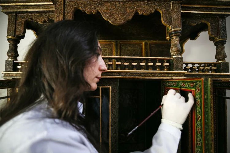 Yaşar, konservasyon çalışmalarında ahşabın dayanıklılığını artırmaya yönelik uygulamalara ağırlık verdiklerini belirterek, "Bir yıl süren konservasyon sürecinin ardından eserin estetik bütünlüğünü yeniden ortaya çıkarmak amacıyla rötuş çalışmaları gerçekleştirildi. Renk düzenlemeleri ve varak uygulamalarıyla bezemelerin daha görünür ve etkili hale gelmesi sağlandı." dedi.