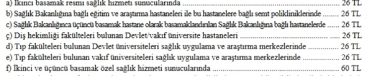 Hastane muayene ücretlerineyüzde 30 oranında zam yapıldı. 31 Aralık 2025 tarihli Resmi Gazete'de yayımlanan "Sosyal Güvenlik Kurumu Sağlık Uygulama Tebliğinde Değişiklik Yapılmasına Dair Tebliğ" ile birlikte muayene katılım payları yeniden belirlendi. Yeni düzenlemeye göre, devlet ve üniversite hastanelerinde muayene ücreti 26 TL'ye, özel hastanelerde ise 60 TL'ye yükseldi.