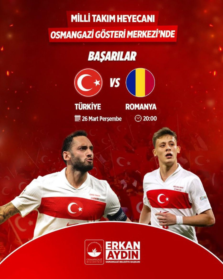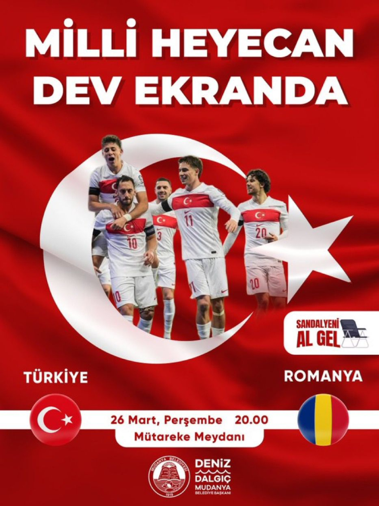 Bursa’da, A Milli Futbol Takımı’nın Romanya ile oynayacağı karşılaşma için farklı noktalarda dev ekran etkinlikleri düzenlenecek. 26 Mart Perşembe günü saat 20.00’de oynanacak mücadele, kent genelinde kurulan alanlarda vatandaşlarla birlikte izlenecek.