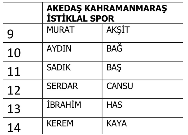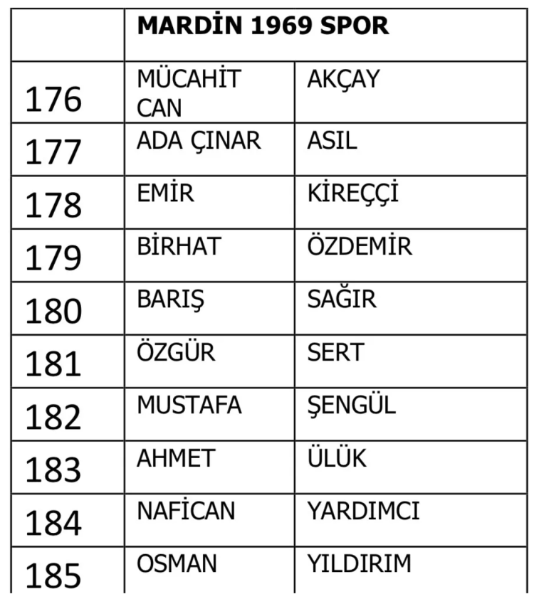 Mardin 1969 Spor: 10 futbolcu