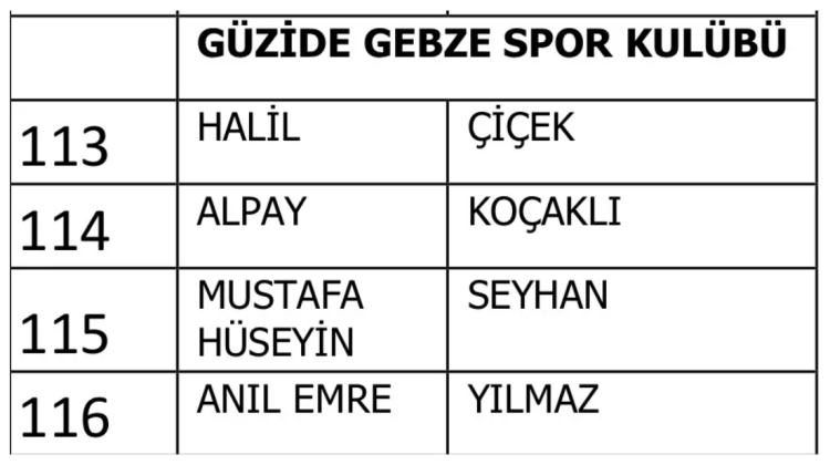 Güzide Gebze Spor: 4 futbolcu