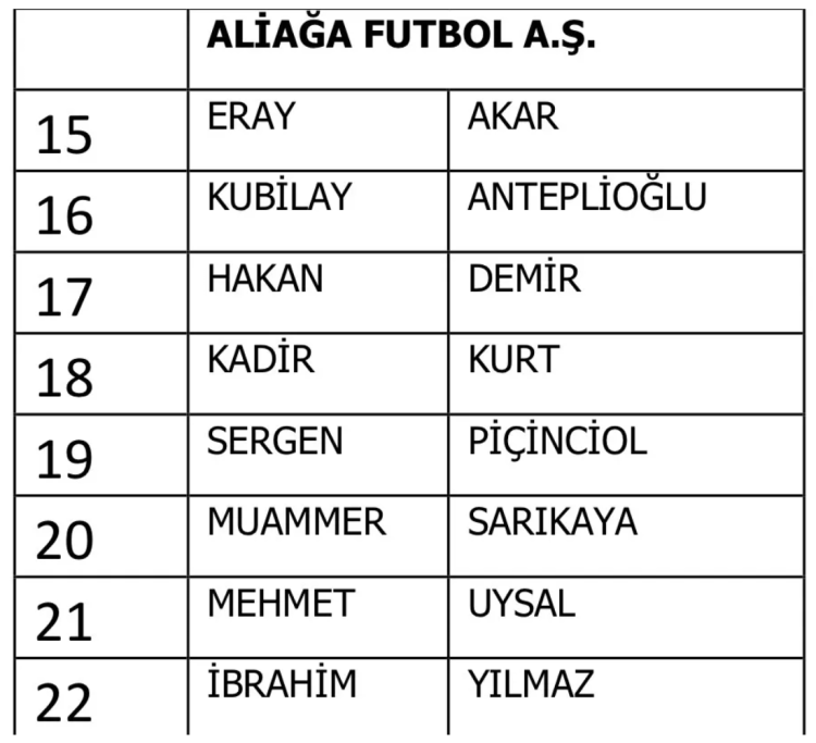 Aliağa FK: 8 futbolcu