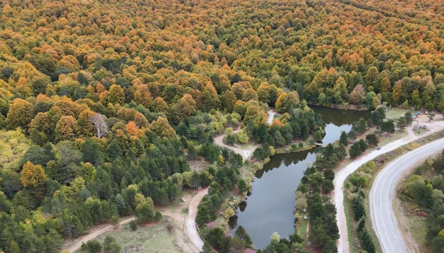 Öte yandan, kayın, meşe ve çam ağaçlarının bir arada bulunduğu Domaniç Dağları'ndaki renk değişimi dron ile görüntülendi.